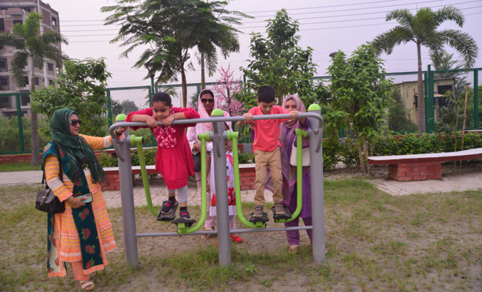রাজধানীর বসুন্ধরা আবাসিক এলাকায় বৃহস্পতিবার বিকেলে ‘বসুন্ধরা কমিউনিটি পার্ক’ উদ্বোধন করা হয়েছে। ছবি: জিএম মুজিবুর