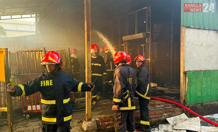 হযরত শাহজালাল আন্তর্জাতিক বিমানবন্দরের কার্গো ভিলেজ এলাকায় লাগা আগুন নিয়ন্ত্রণে কাজ করছে ফায়ার সার্ভিসের ৩৬টি ইউনিট। ছবি: বাংলানিউজ