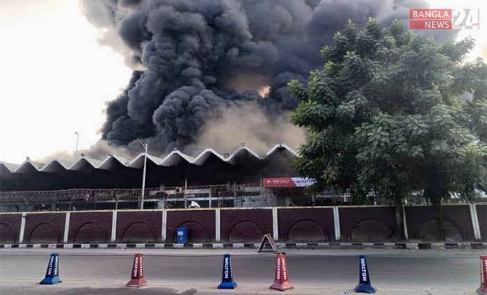 হযরত শাহজালাল আন্তর্জাতিক বিমানবন্দরের কার্গো ভিলেজ এলাকায় আগুন, ফ্লাইট চলাচল সাময়িক স্থগিত। ছবি: বাংলানিউজ