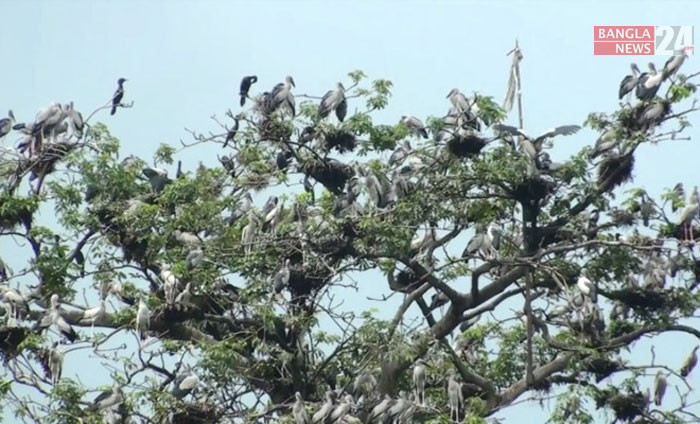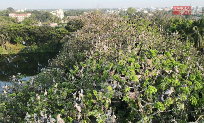 গাছে ঝাঁকেঝাঁকে পরিযায়ী পাখি এসে বাসা বেঁধেছে। ছবিটি নাটোরের রানি ভবানীর রাজবাড়ি থেকে তুলেছেন মামুনুর রশীদ