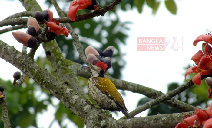 শিমুল ফুলে বসে আছে কাঠঠোকরা। ছবিটি পাবনার ঈশ্বরদী পৌর এলাকার পাতিবিল থেকে তুলেছেন টিপু সুলতান।