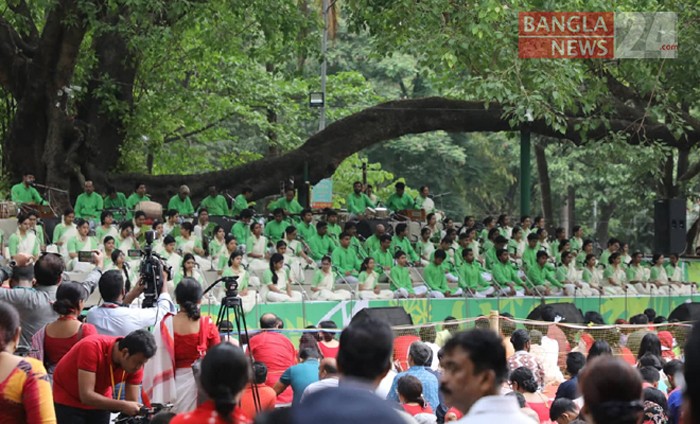 দুই বছর পর রমনা বটমূলে চলছে ছায়ানটের বর্ষবরণ। ছবি: ডিএইচ বাদল