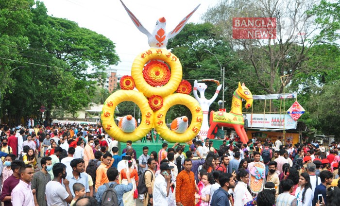 পহেলা বৈশাখের মঙ্গল শোভাযাত্রায় মানুষের ঢল। ছবি: শাকিল আহমেদ