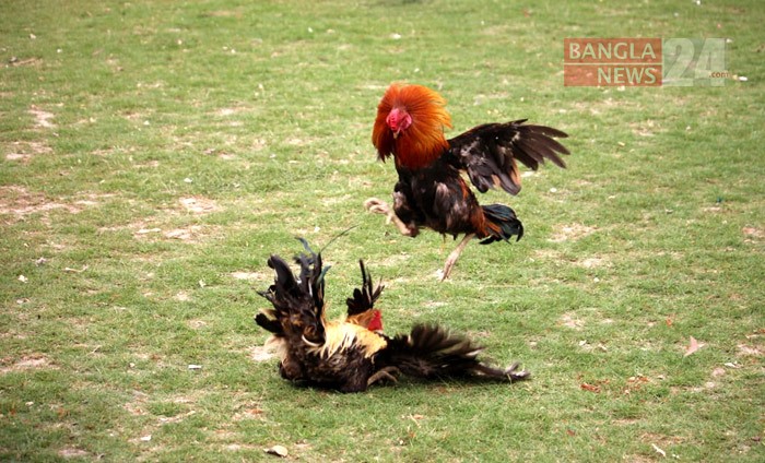বাংলা নববর্ষ উপলক্ষে খুলনা বিশ্ববিদ্যালয়ে আবহমান গ্রামবাংলার বিলুপ্ত প্রায় মোরগ লড়াই অনুষ্ঠিত হয়। ছবি: মাহবুবুর রহমান মুন্না