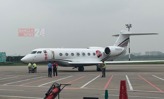অপেক্ষার প্রহর শেষে বাংলাদেশে এসে পৌছেছে ফুটবল বিশ্বকাপের ট্রফি। ছবি: শোয়েব মিথুন