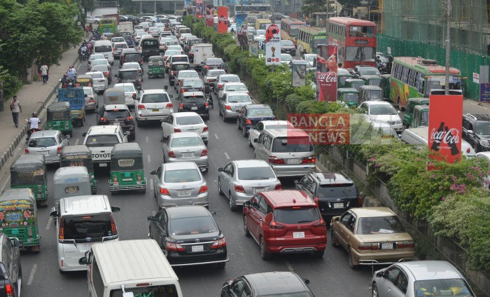 রাজধানীর বিভিন্ন সড়কে সৃষ্টি হয়েছে তীব্র যানজট। এতে চরম ভোগান্তিতে পড়েছেন নগরবাসী। ছবি: মুজিবুর রহমান