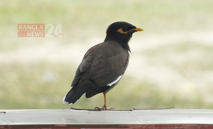 এক পায়ে দাঁড়িয়ে শালিক পাখি। ছবি: সুলতান
