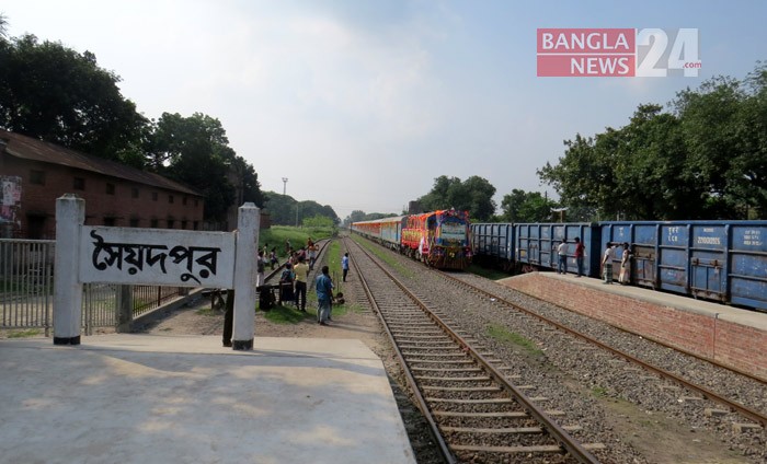 আন্তঃদেশীয় ট্রেন ‘মিতালী এক্সপ্রেস’ সৈয়দপুর স্টেশনে প্রবেশ করছে। ছবি: আমিরুজ্জামান