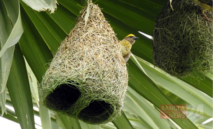 চলতি পথে মাগুরা শহরের কলকলিয়া পাড়া ফসলের মাঠের পাশের একটি তালগাছে দেখা মিললো বাবুই পাখির বাসা। ছবি: জয়ন্ত জোয়ার্দ্দার