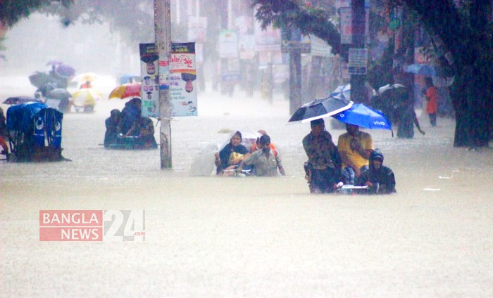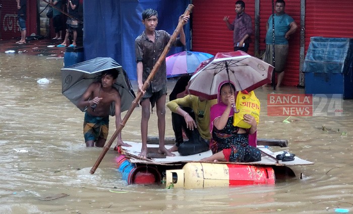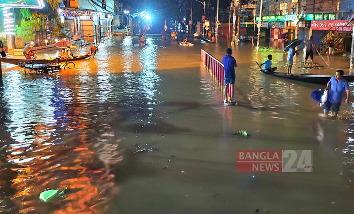সিলেট নগরীর নতুন নতুন এলাকা প্লাবিত হচ্ছে। ছবি: মাহমুদ হোসেন