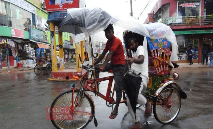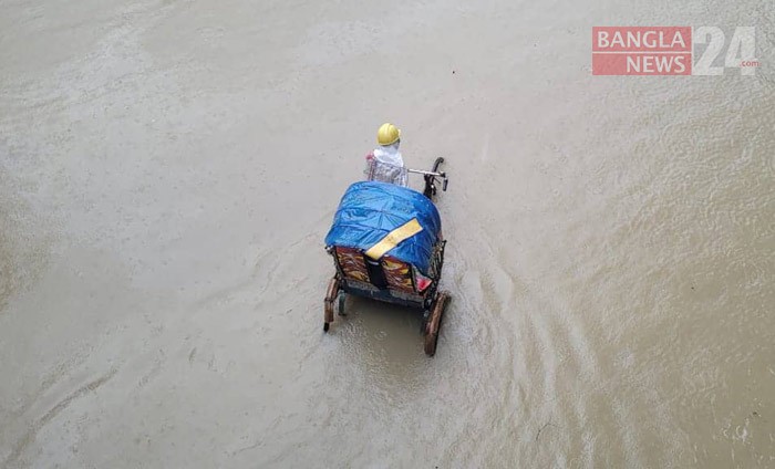 মাগুরায় প্রচণ্ড বৃষ্টির মধ্যে জীবনের প্রয়োজনে রিকশা চালাচ্ছেন চালক। ছবিটি মাগুরা চৌরাঙ্গী মোড় এলাকা থেকে তুলেছেন জয়ন্ত জোয়াদ্দার