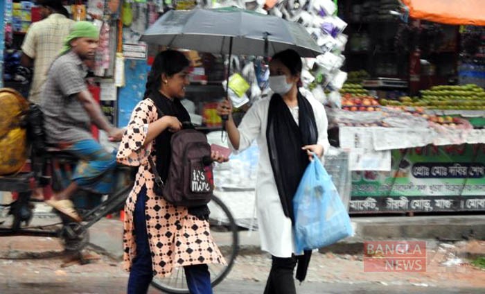বৃষ্টির মধ্যে ছাতা মাথায় দিয়ে প্রয়োজনে ঘর ছেড়ে বাইরে এসেছেন তরুণীরা।ছবিটি মাগুরা চৌরাঙ্গী মোড় এলাকা থেকে তুলেছেন জয়ন্ত জোয়দ্দার
