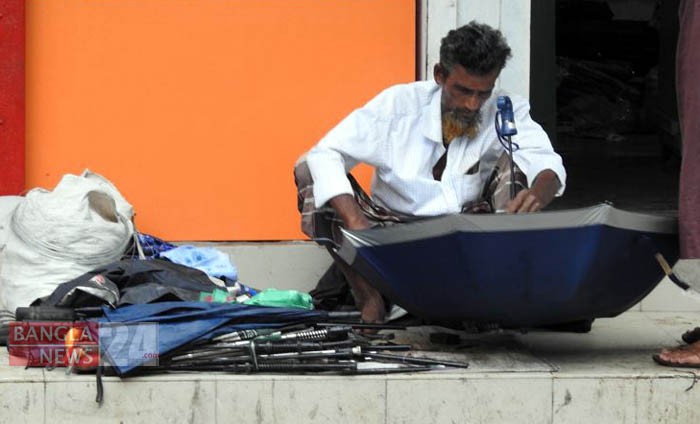 বৃষ্টির দিনে ছাতা মেরামতকারীর ব্যস্ততা বেড়ে যায় দ্বিগুণ । ছবিটি মাগুরা চৌরাঙ্গী মোড় এলাকা থেকে তুলেছেন জয়ন্ত জোয়দ্দার