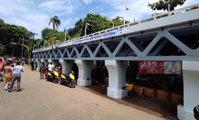 পদ্মা সেতুর উদ্বোধন উপলক্ষে চট্টগ্রামের জামালখান এলাকায় সেতুর রেপ্লিকা বানিয়ে সাজসজ্জা করা হয়। ছবি: উজ্জ্বল ধর