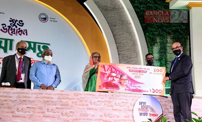 পদ্মা সেতু উদ্বোধন উপলক্ষে স্মারক ডাকটিকিট, স্যুভেনির শিট, উদ্বোধনী খাম ও সিলমোহর প্রকাশ করেন প্রধানমন্ত্রী শেখ হাসিনা।