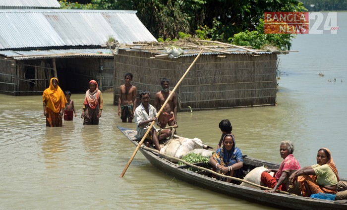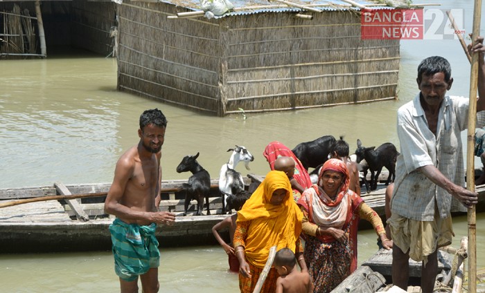 কুড়িগ্রামের বন্যা পরিস্থিতির কিছুটা উন্নতি হলেও দুর্ভোগে বানভাসি মানুষ: ছবি: ফজলে ইলাহী স্বপন