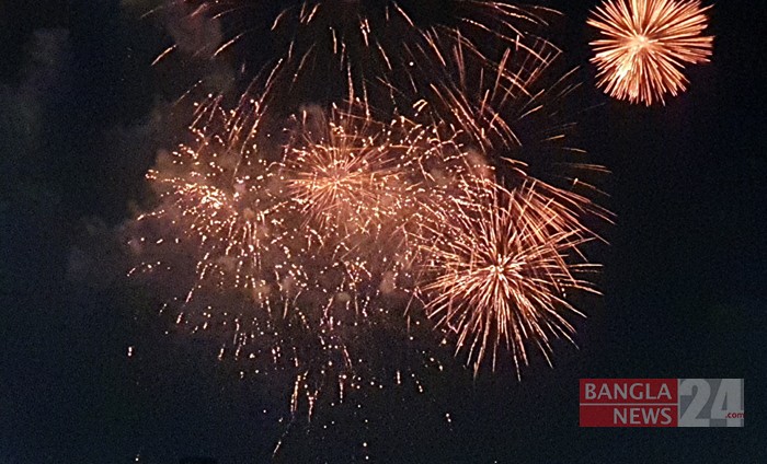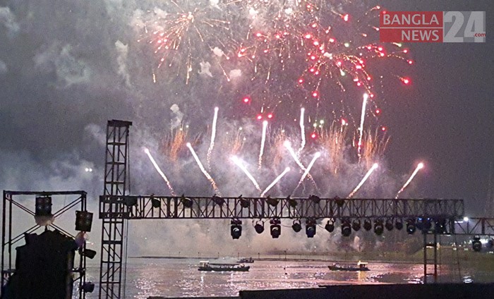 পদ্মাসেতুর উদ্বোধনী অনুষ্ঠান উপলক্ষে হাতিরঝিলে আতশবাজির প্রদর্শনী। ছবি: জিএম মুজিবুর