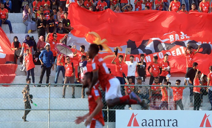 ম্যাচ জেতায় বসুন্ধারা কিংসের সমর্থকদের উল্লাস । ছবি: শোয়েব মিথুন