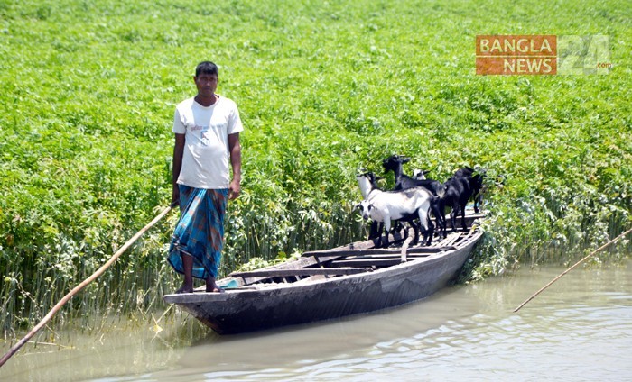 কুড়িগ্রামের বন্যা পরিস্থিতির কিছুটা উন্নতি হলেও দুর্ভোগে বানভাসি মানুষ: ছবি: ফজলে ইলাহী স্বপন