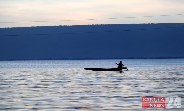 টাঙ্গুয়ার হাওরে ছোট তরী বেয়ে বাড়ি ফিরছে এক স্কুল পড়ুয়া শিশু। ছবি: সোলায়মান হাজারী ডালিম