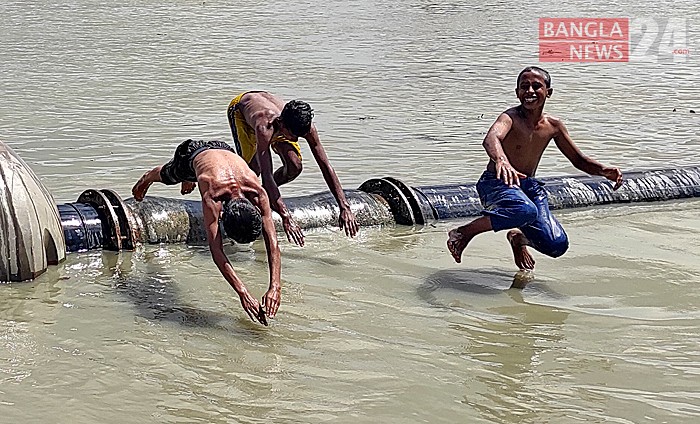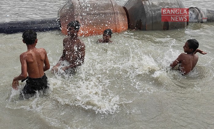 কর্ণফুলি নদীতে জলকেলিতে মাতোয়ারা শিশু-কিশোররা। ছবি: উজ্জ্বল ধর