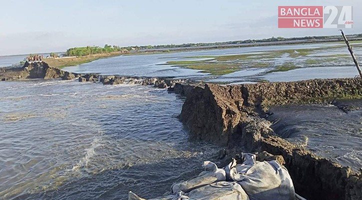 সুন্দরবন উপকূলীয় জনপদ খুলনার কয়রা উপজেলার দক্ষিণ বেদকাশি ইউনিয়নের সাত নম্বর ওয়ার্ডের বেড়িবাঁধ নদী ভাঙনের কবলে পড়েছে। ছবি: মাহবুবুর রহমান মুন্না