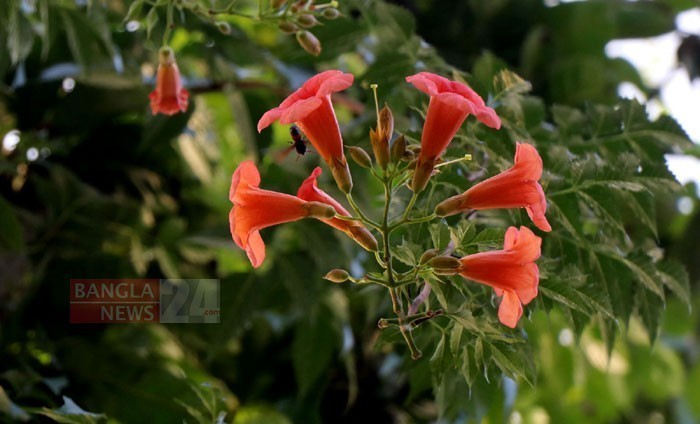 কৃষ্ণচূড়ার ঝলমলে রঙিন শোভা। ছবিটি হাতিরঝিল থেকে তুলেছেন শাকিল আহমেদ।