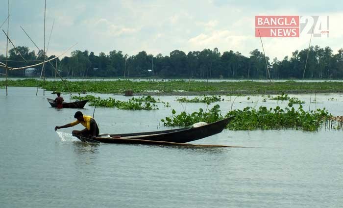 বিলের পানিতে মাছ ধরছে এক জেলে। পাবনার বাঙ্গাবাড়িয়া এলাকা থেকে ছবিটি তুলেছেন টিপু সুলতান