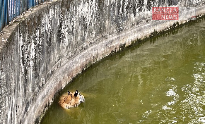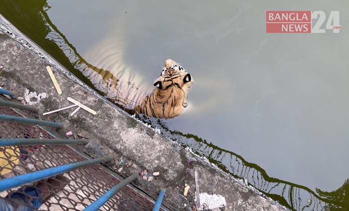 তীব্র গরমে কিছুটা আরাম পেতে পানিতে নেমেছে রয়েল বেঙ্গল টাইগার। ছবিটি জাতীয় চিড়িয়াখানা থেকে তুলেছেন মহিউদ্দিন মাহমুদ।