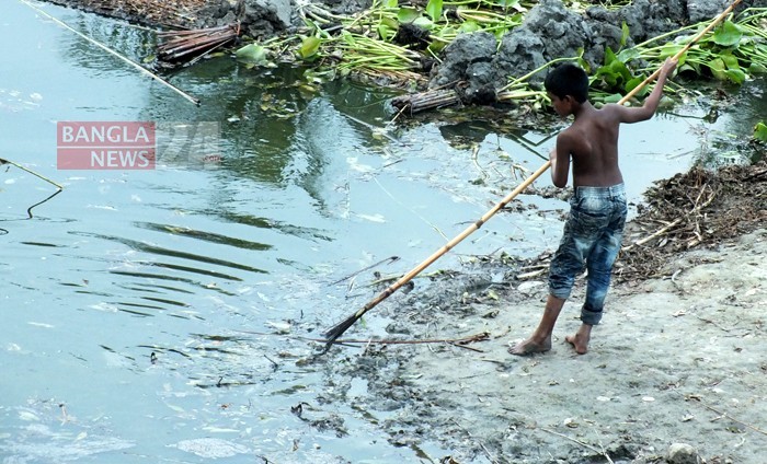 বর্ষাকালে গ্রামের ডোবায় 'টেঁটা' দিয়ে মাছ ধরছে এক শিশু। পাবনার ঈশ্বরদী উপজেলার মুলাডুলি ইউনিয়নে পতিরাজপুর গ্রাম থেকে ছবিটি তুলেছেন টিপু সুলতান।