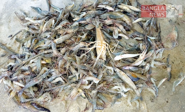 চাঁদপুরের মেঘনা নদীতে দেশীয় প্রজাতির চিংড়ি ধরা পড়ছে। ছবি: মুহাম্মদ মাসুদ আলম