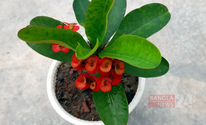 টবে ফুটেছে রানি মুকুট। ছবি: জি এম মুজিবুর