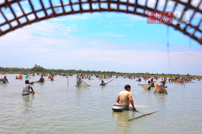 সিলেটের বিশ্বনাথ উপজেলার গোয়াহরি বিলে প্রতি বছরের ন্যায় আজ অনুষ্ঠিত হলো পলো বাওয়া উৎসব। ছবি: মাহমুদ হোসেন