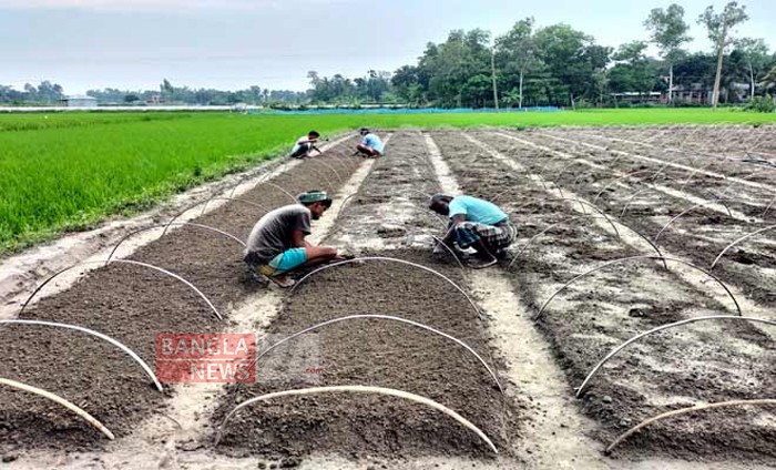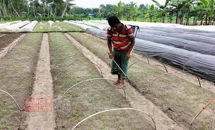 আগাম সবজি চাষে বীজতলায় ব্যস্ত কৃষক। ছবি: কাওছার উল্লাহ আরিফ