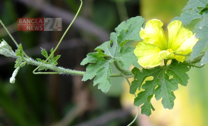 সবুজ ডগায় হলদে করলা ফুল। পাবনার ঈশ্বরদী পৌর এলাকার পশ্চিমটেংরী এলাকা থেকে ছবিটি তুলেছেন টিপু সুলতান।