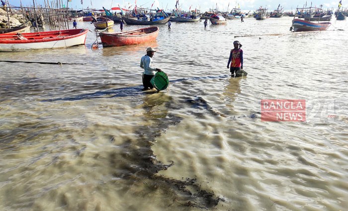 চট্টগ্রামের দক্ষিণ কাট্টলী রাণী রাসমণি ঘাটে জেলেদের নৌকা থেকে প্রতিনিয়ত সমুদ্রে ফেলা হচ্ছে পোড়া তেলসহ নানা ধরনের বর্জ্য। এতে মারাত্মকভাবে দূষিত হচ্ছে সমুদ্রের পানি। ছবি: উজ্জ্বল ধর