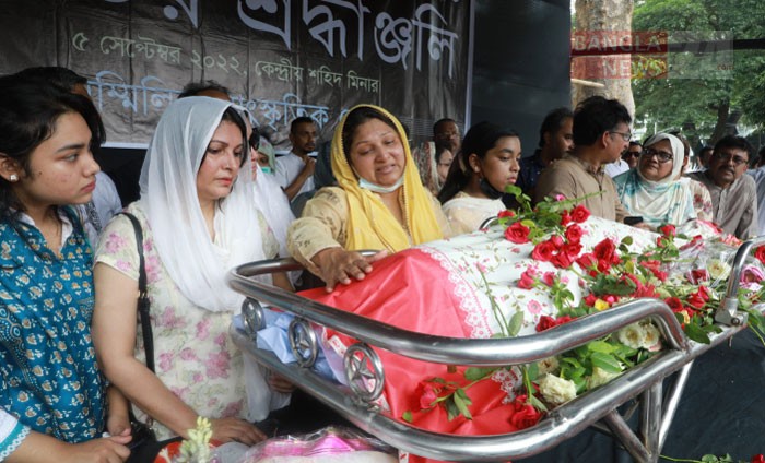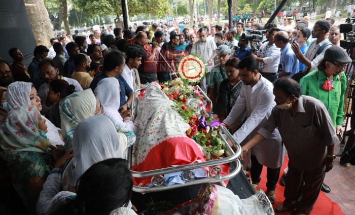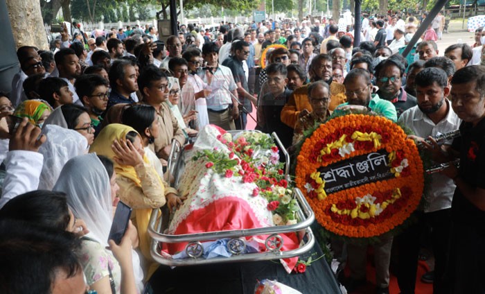 জাতীয় শহীদ মিনারে শ্রদ্ধায় সিক্ত গীতিকবি গাজী মাজহারুল আনোয়ার। ছবি: ডিএইচ বাদল