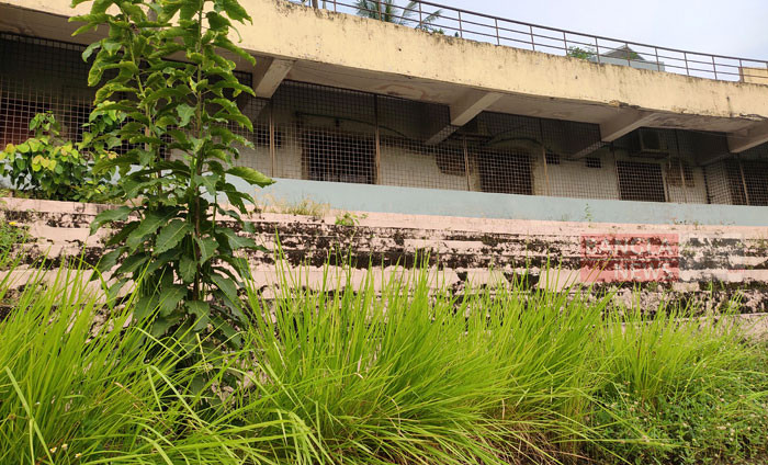 অযত্ন-অবহেলা আর পরিচর্যার অভাবে চট্টগ্রামের এম এ আজিজ স্টেডিয়ামের গ্যালারি ভরে গেছে আগাছায়। ছবি: সোহেল সরওয়ার