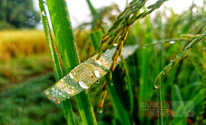 সোনালী ধানে শিশির বিন্দু। ছবি: সোলায়মান হাজারী ডালিম