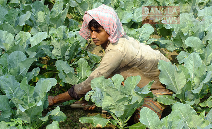 আগাম চাষ করা শীতকালীন সবজির পরিচর্যায় ব্যাস্ত কৃষক। ছবি: টিপু সুলতান