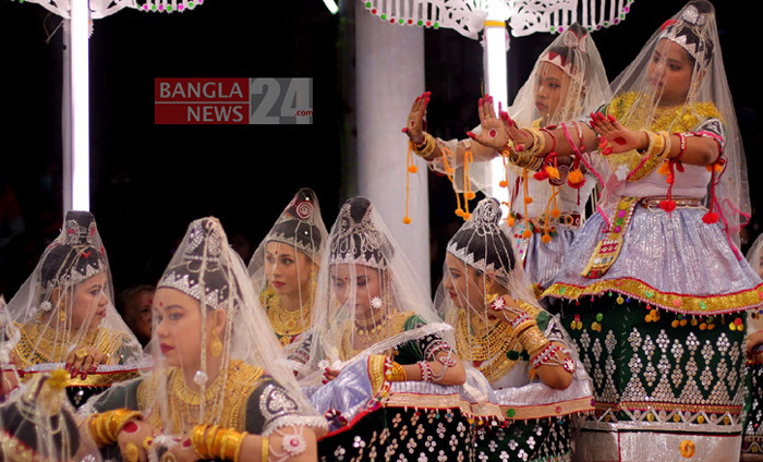 মণিপুরী রাসলীলা উৎসবে দলগত নৃত্য। ছবি: বাংলানিউজ