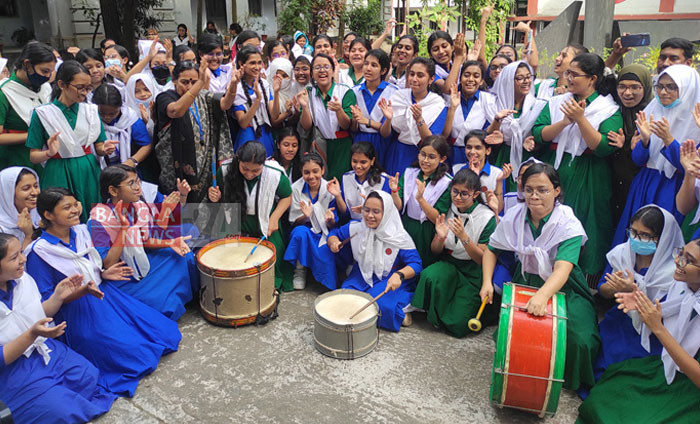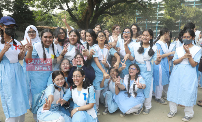 চট্টগ্রামের ডা. খাস্তগীর উচ্চ বালিকা বিদ্যালয়ের জিপিএ-৫ প্রাপ্ত ছাত্রীদের উচ্ছ্বাস। ছবি: উজ্জ্বল ধর