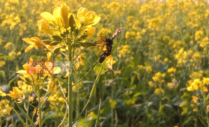 সরিষা ফুল থেকে মধু সংগ্রহের ব্যস্ত মৌমাছি। মাগুরার বেনীপুর থেকে ছবিটি তুলেছেন জয়ন্ত জোয়ারদার