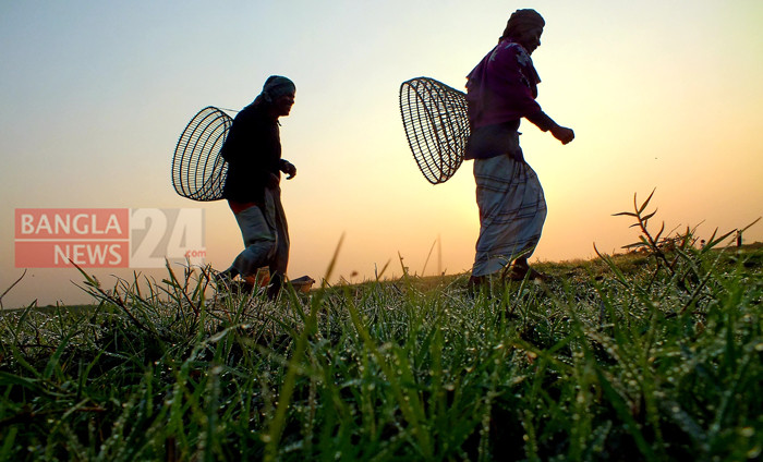 ভোরের আলো ফুটছে, শিশির ভেজা মাঠ মাড়িয়ে পলো নিয়ে মাছ শিকারে যাচ্ছেন সব বয়সী সৌখিন মৎস্য শিকারীরা। ছবি- টিপু সুলতান