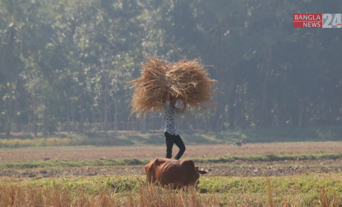 ধান কেটে, আঁটি বেঁধে বাড়িতে নিয়ে যাচ্ছেন কৃষক। বরিশাল সদর উপজেলার লাকুটিয়া থেকে ছবিটি তুলেছেন এন আমিন রাসেল।