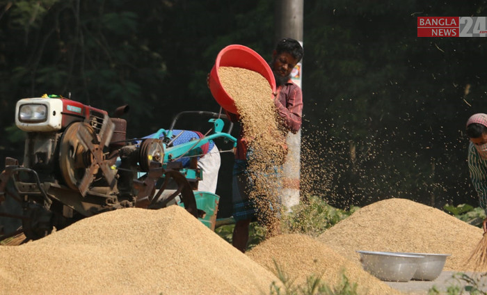 ধান মাড়াই শেষে ঝাড়ার কাজে ব্যস্ত কৃষক। বরিশাল সদর উপজেলার লাকুটিয়া থেকে ছবি তুলেছেন এন আমিন রাসেল।