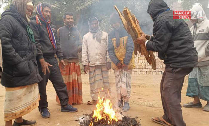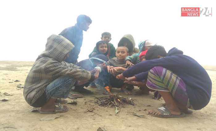 শীত থেকে বাঁচতে আগুন পোহাচ্ছে মানুষ। ছবি: শরীফ সুমন
