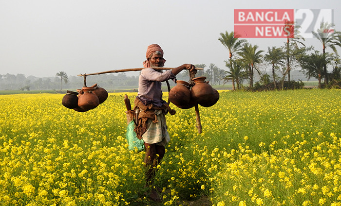 তীব্র শীতে মাগুরায় খেজুরের রস সংগ্রহে ব্যস্ত গাছিরা। ছবি: জয়ন্ত জোয়ার্দ্দার