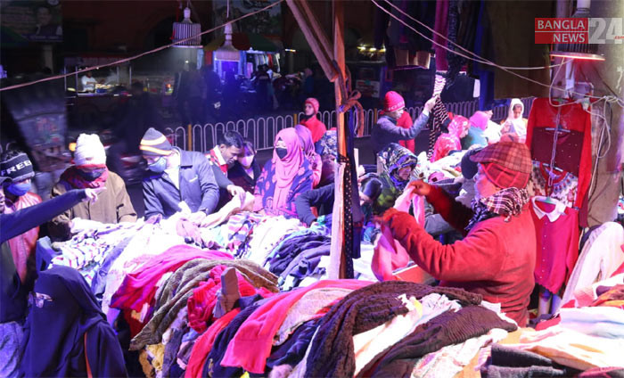 তীব্র ঠাণ্ডায় বরিশাল নগরীর ফুটপাতের দোকানগুলো বেড়েছে শীতবস্ত্র বেচাকেনা। ছবি: এন আমিন রাসেল