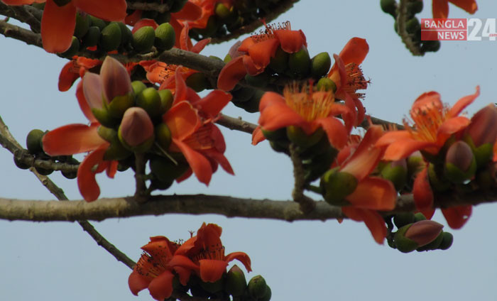 ফাল্গুন আসার আগে গাছে গাছে শোভা পাচ্ছে শিমুল ফুল। ঈশ্বরদীর রূপপুর রেলস্টেশন থেকে ছবিটি তুলেছেন টিপু সুলতান